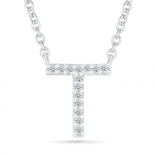 Sterling Silver & Diamond "T" Initial Necklace