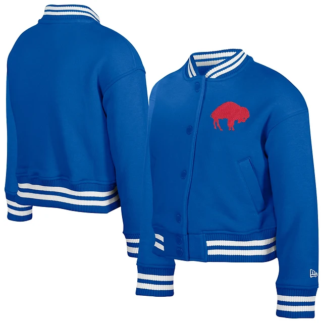 Youth New Era Royal Buffalo Bills Throwback Chenille Applique Fleece Full-Snap Jacket