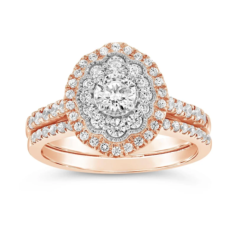 10K Rose Gold 1.00CTW Diamond Oval Shaped Bridal Set10K Rose Gold 1.00CTW Diamond Oval Shaped Bridal Set10K Rose Gold 1.00CTW Diamond Oval Shaped Bridal Set