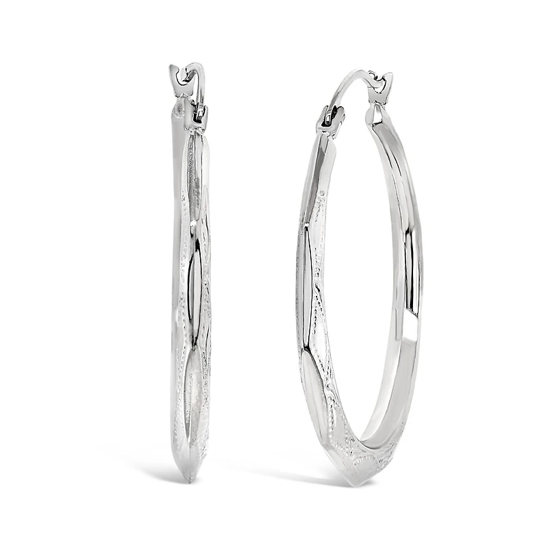 10K White Gold Pattern Creole Earrings