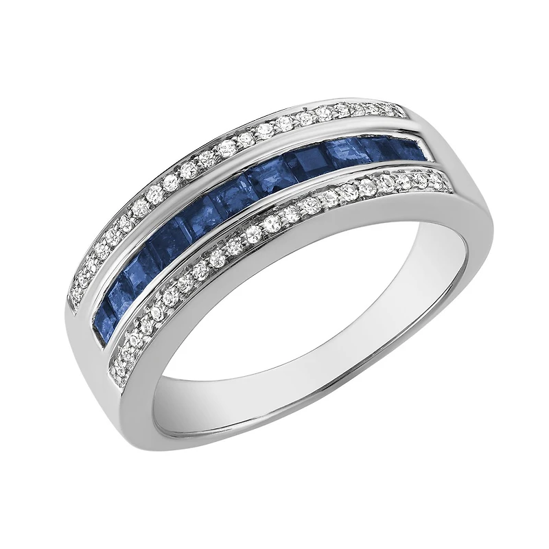 10K White Gold Sapphire and 0.15CTW Diamond Ring