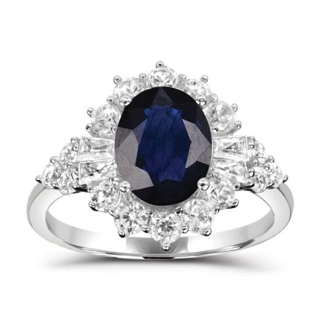 10K White Gold Sapphire & Lab Grown Diamond Halo Ring