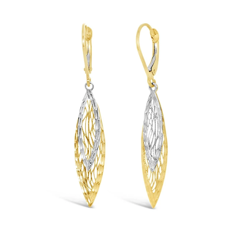 10K Yellow and White Gold Diamond Cut Dangle Earrings