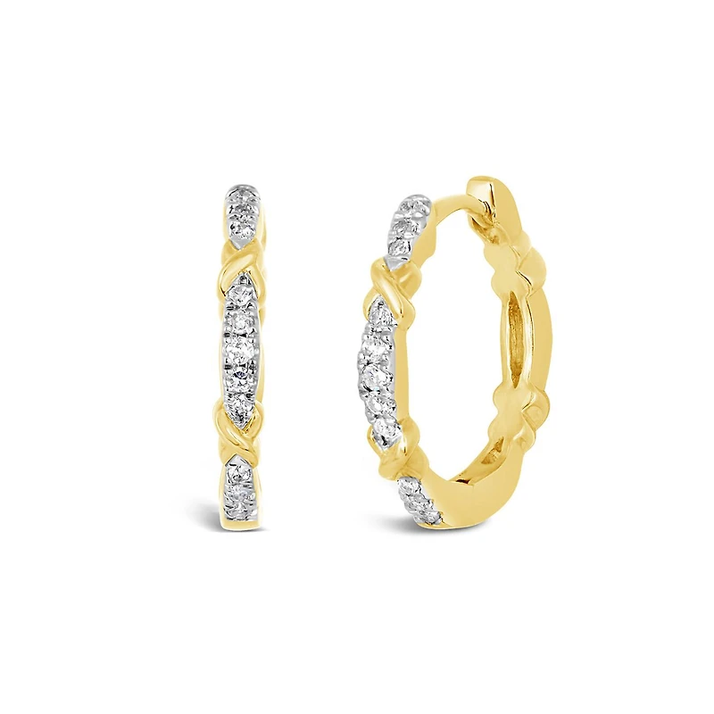10K Yellow Gold 0.10CTW Diamond Crisscross Hoops