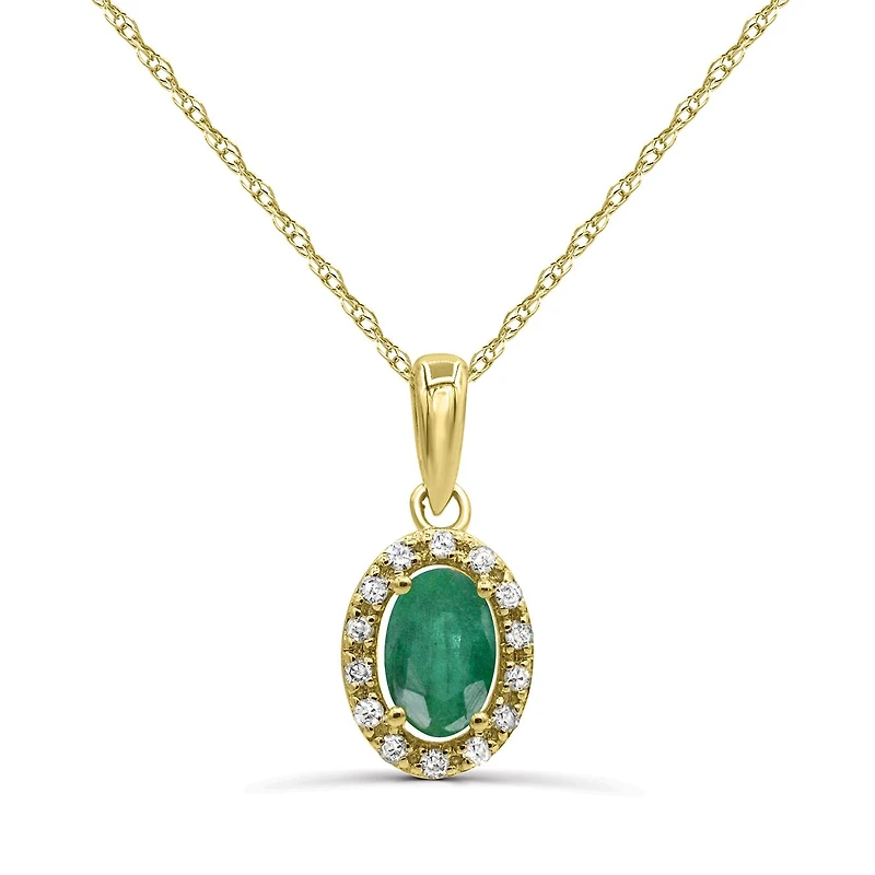 10K Yellow Gold Emerald & Diamond Halo 18" Pendant