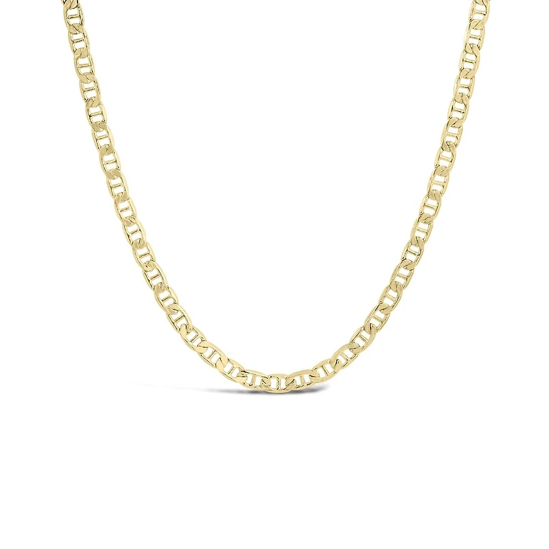 This 10K yellow gold flat mariner necklace features a sleek and modern design with interlocking anchor links, offering a timeless look. Its high-quality gold construction ensures durability while maintaining a refined, polished appearance. The chain is an elegant choice for both men and women, perfect for adding a touch of sophistication to any ensemble.
