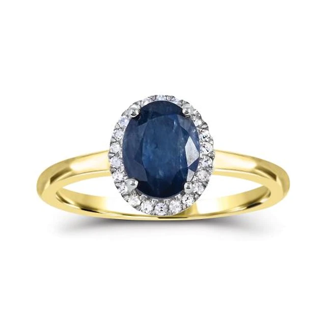 10K Yellow Gold Sapphire and Diamond Halo Ring