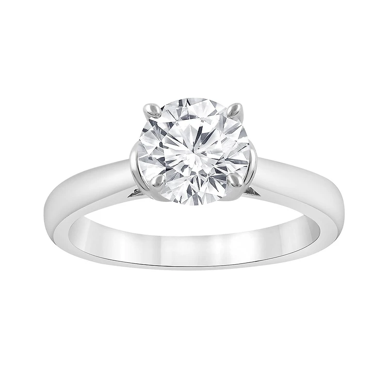 Fashioned in 14K white gold, this exquisite ring showcases a brilliant lab-grown solitaire diamond weighing 1.50 carats with SI2 clarity and HI colour. Its classic and elegant design makes it a perfect choice for engagements or commemorating special moments, radiating timeless beauty and sparkle.