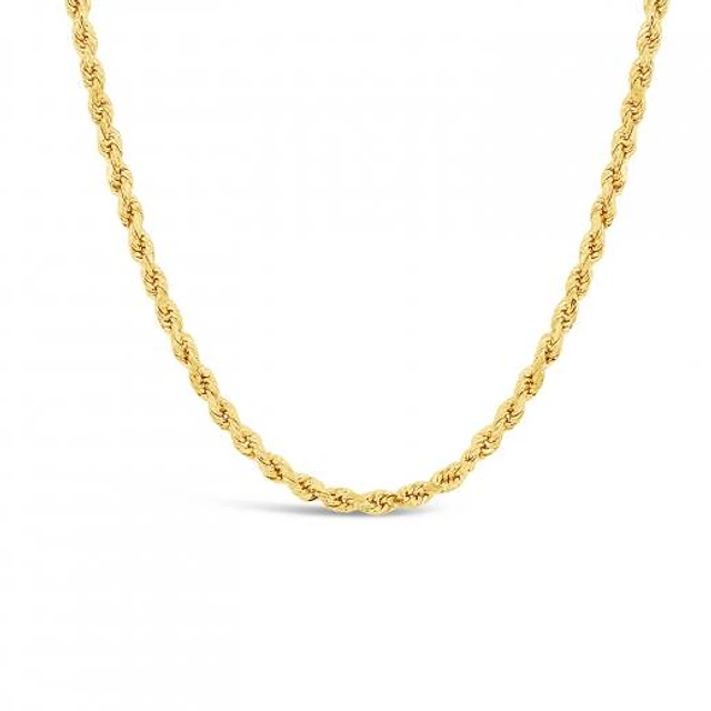 14K Yellow Gold 24" Semi-Solid Diamond Cut Rope Chain