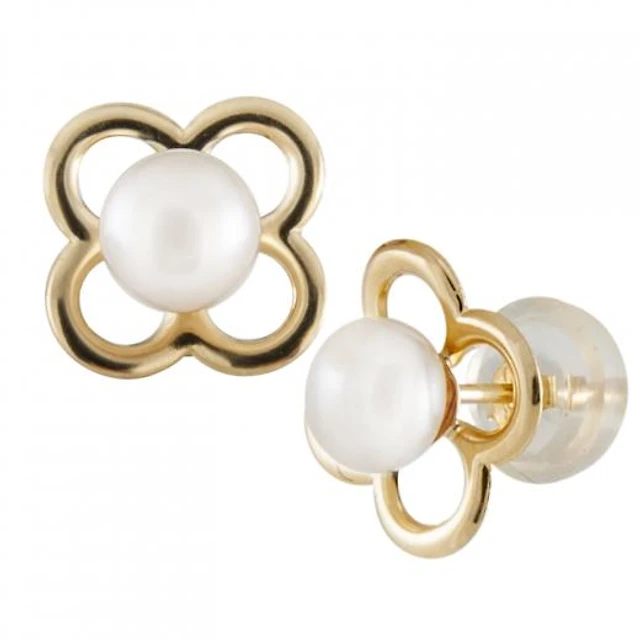 14K Yellow Gold 4-4.5mm White Freshwater Pearl Earrings