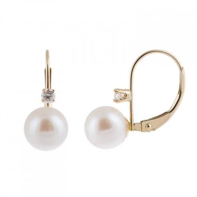 14K Yellow Gold Diamond Accented & 7-8mm Pearl Leverback Earrings