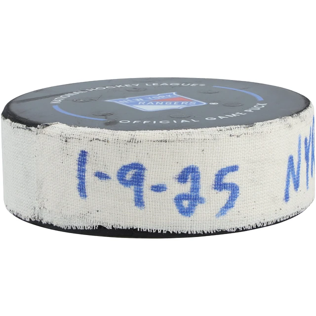 Adam Fox New York Rangers Game-Used Goal Puck vs. New Jersey Devils on January 9, 2025
