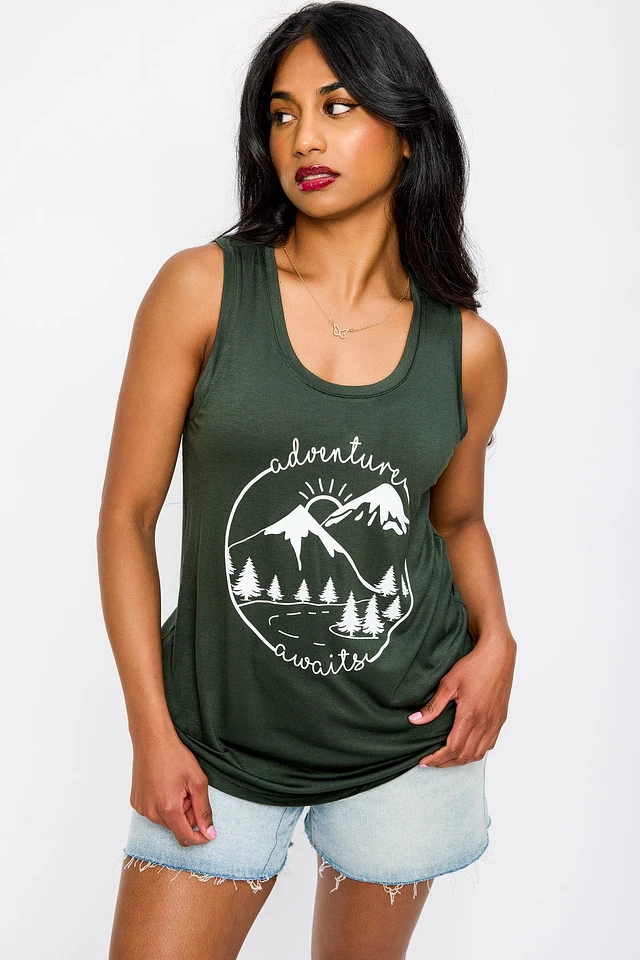 "Adventure Awaits" Graphic Tank Top