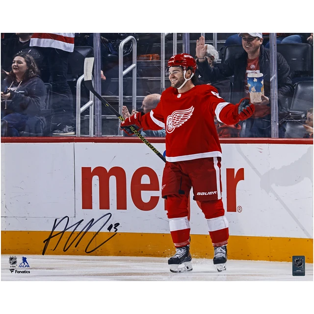 Alex DeBrincat Detroit Red Wings Autographed 16" x 20" Red Jersey Celebrating Photograph