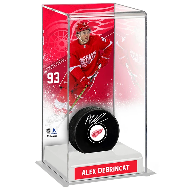 Alex DeBrincat Detroit Red Wings Autographed Hockey Puck with Deluxe Tall Case