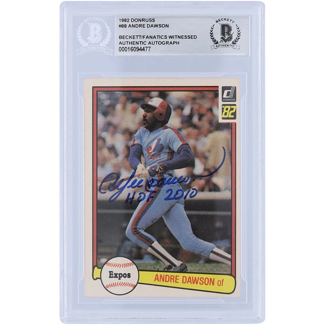 Andre Dawson Montreal Expos Autographed 1982 Donruss Series 1 #88 Beckett Fanatics Witnessed Authenticated Card with "HOF 2010" Inscription