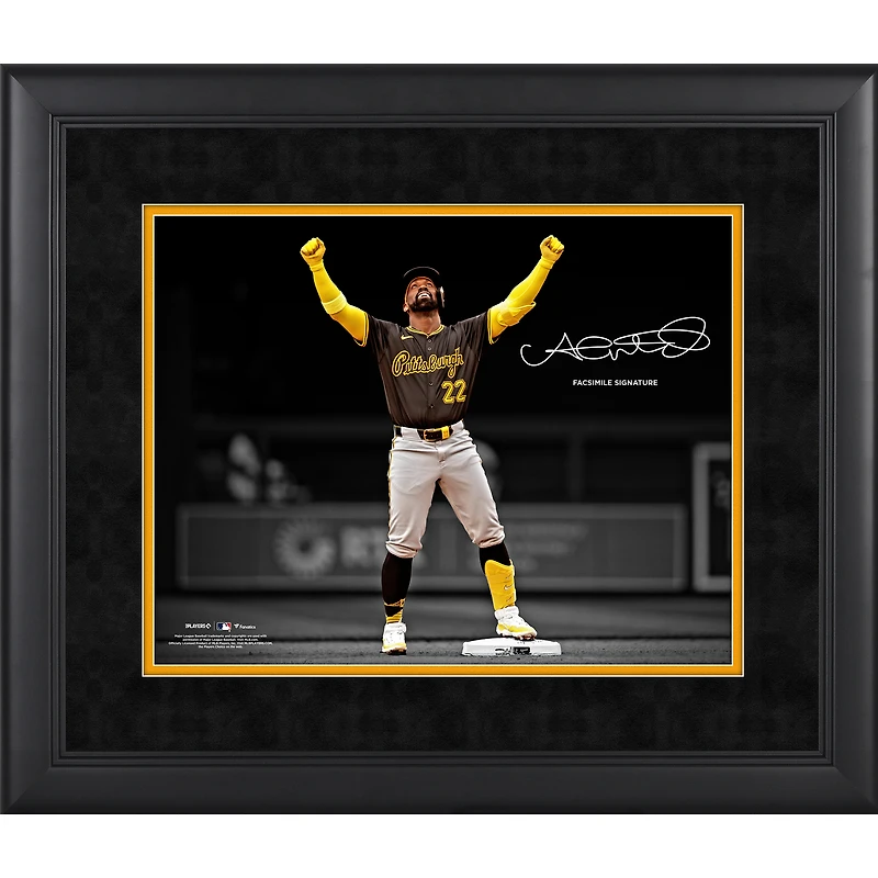 Showcase your Pittsburgh Pirates pride with this Andrew McCutchen Facsimile Signature Framed 11" x 14" Spotlight Photograph. This framed photograph captures "Cutch" during his time with the Pirates, showcasing the dynamic energy and infectious joy that made him a fan favorite. The facsimile signature adds a personal touch, making it feel like a treasured memento. This ready-to-hang piece is perfect for any fan looking to add a touch of Pittsburgh pride to their home or office.