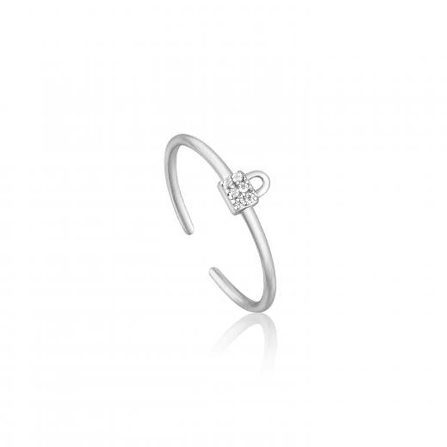 Ania Haie Silver Padlock Sparkle Adjustable Ring