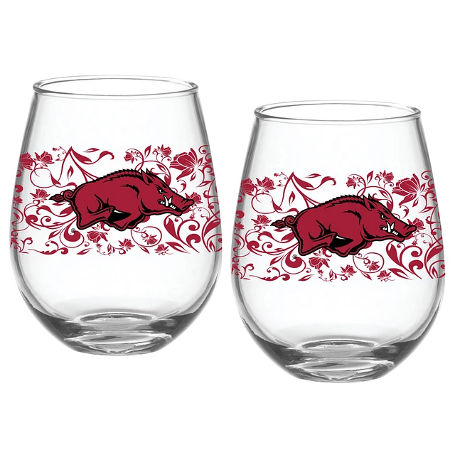 Arkansas Razorbacks Two-Pack 15oz. Floral Stemless Glass Set