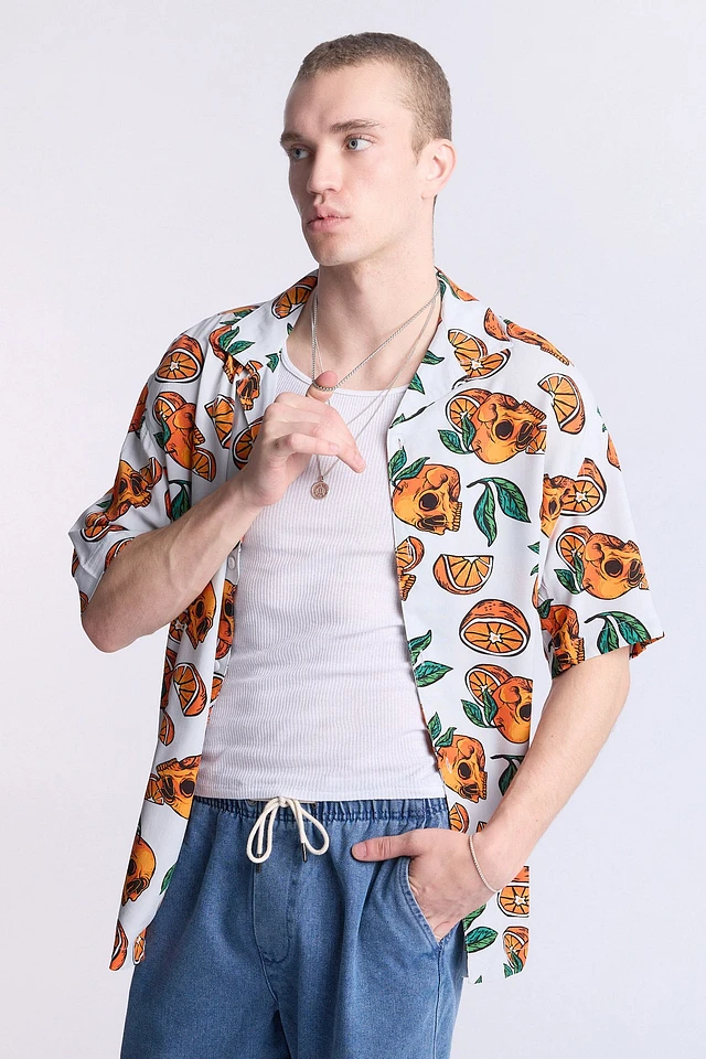 Arsenic Mens Orange Skulls Button-Up - Blue /