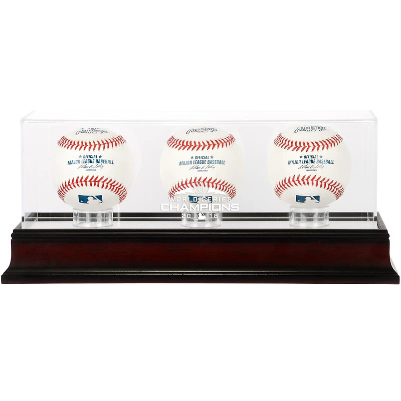 Commemorate the Boston Red Sox as the 2018 World Series Champions with this collectible baseball display case. The three ball display features a 1/8" thick clear acrylic removable lid with an antique mahogany finished base. The case is perfect for collectible baseballs. Officially licensed by Major League Baseball. It measures 9.125" x 6" x 5.125". Memorabilia not included.