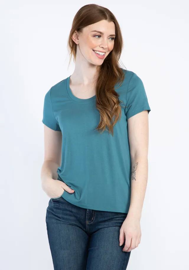 Short Sleeve V-Neck Tee with Shirttail Hem