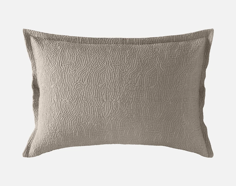 Venture into the forest of your dreams with our Brava Pillow Sham. This captivating collection is a tribute to Portugal's evergreen cork trees, which flourish in forests throughout its southern side. This gift of nature is expressed with its intricate bark-like rippling texture, all in a serene light taupe shade. Made with 100% long-staple cotton for indulgent softness, strength, and breathability, this blissful pillow cover makes any bed into a naturally inviting space.