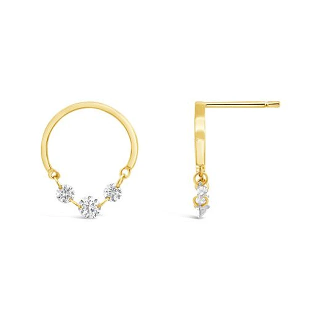 10K Yellow and White Gold Triple Circle Dangle Earrings