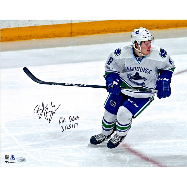 Brock Boeser Vancouver Canucks Autographed 16" x 20" NHL Debut Skating Photograph with "NHL Debut 3/25/17" Inscription