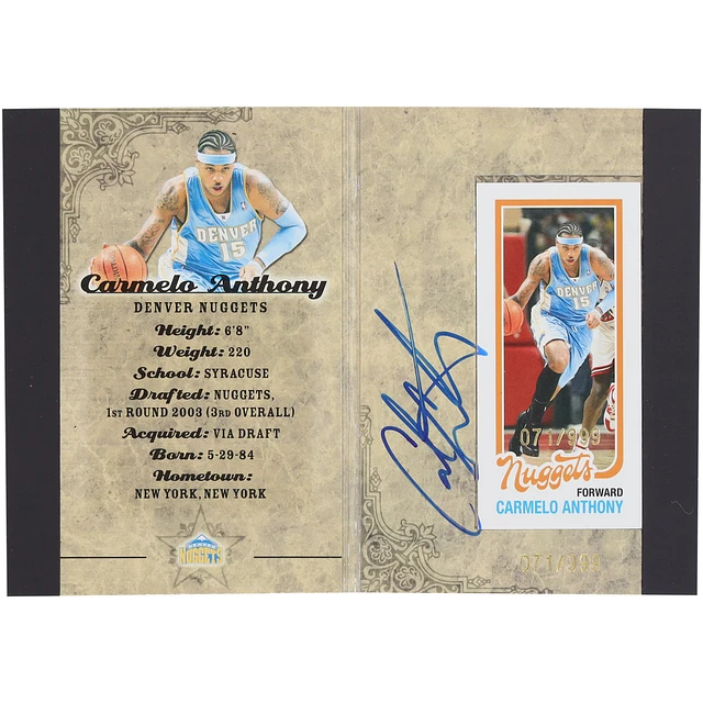 Carmelo Anthony Denver Nuggets Autographed 2008 Topps All Star Weekend Booklet Mini Card #NNO #71/999 Card