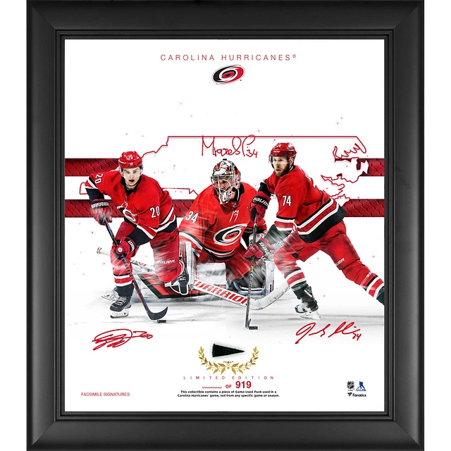 Carolina Hurricanes Framed 15" x 17" Franchise Foundations Collage with a Piece of Game Used Puck - Limited Edition of 919
