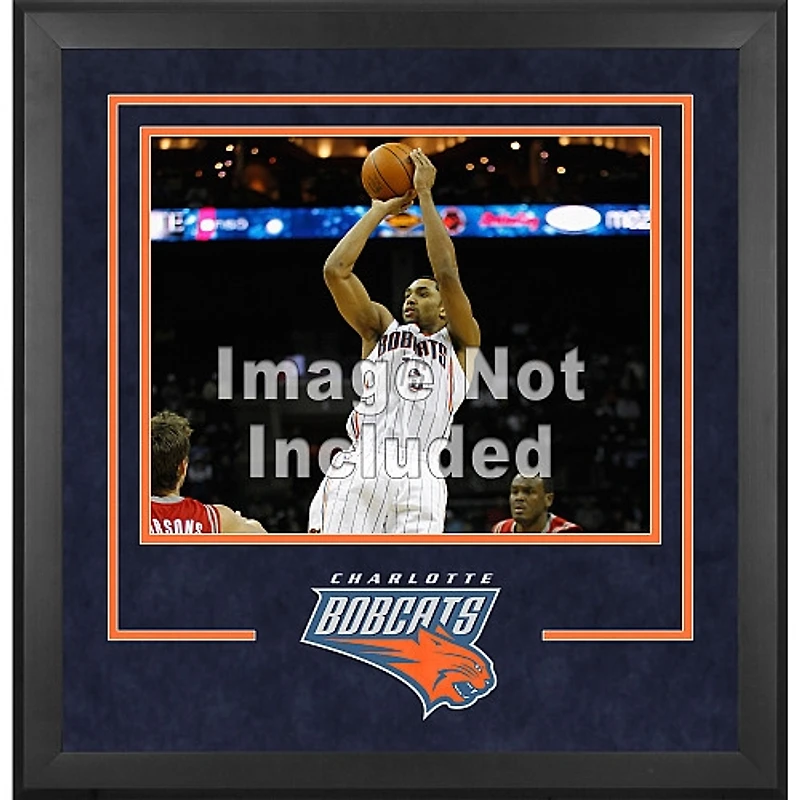 The Charlotte Bobcats deluxe 16" x 20" frame with team logo is a perfect addition for the collector looking to professionally display their loose (horizontal) 16" x 20" photo. Each black wood frame is double matted with a suede top mat and includes a laser cut team logo that has been individually assembled. The back of the frame opens for quick and easy access when adding your favorite photo. Please note that this is for horizontal photos only. Officially licensed by the National Basketball Association. Framed dimensions are 29" x 27" x 1".