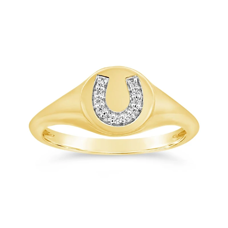 Charmables 10K Yellow Gold Diamond Horseshoe Signet Ring in Vernon, BC