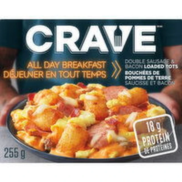 Crave - All Day Breakfast Double Sausage and Bacon Tots, 255 Gram