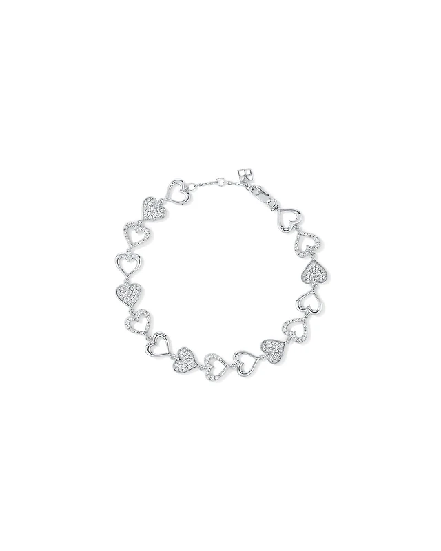 Cubic Zirconia open and closed Heart Bracelet in Sterling Silver