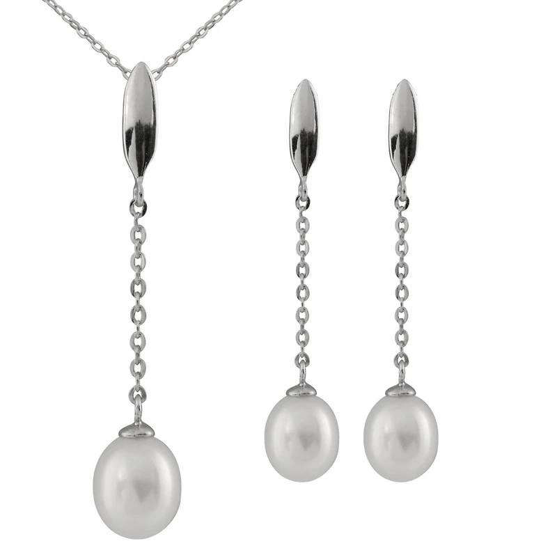 Featuring lustrous pearls delicately suspended from polished silver, this set offers a graceful and eye-catching design that effortlessly enhances any look.