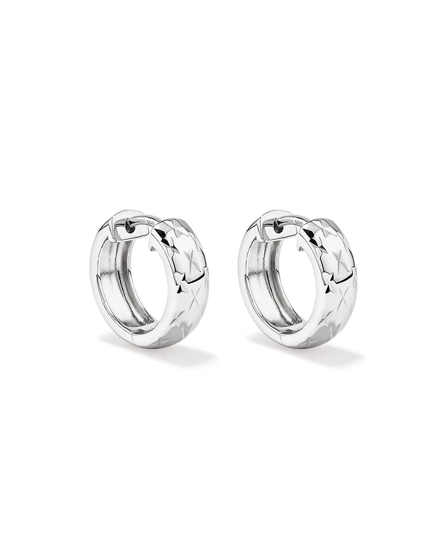 Diamond Cut Texture Huggie Hoop Earrings in Sterling Silver
