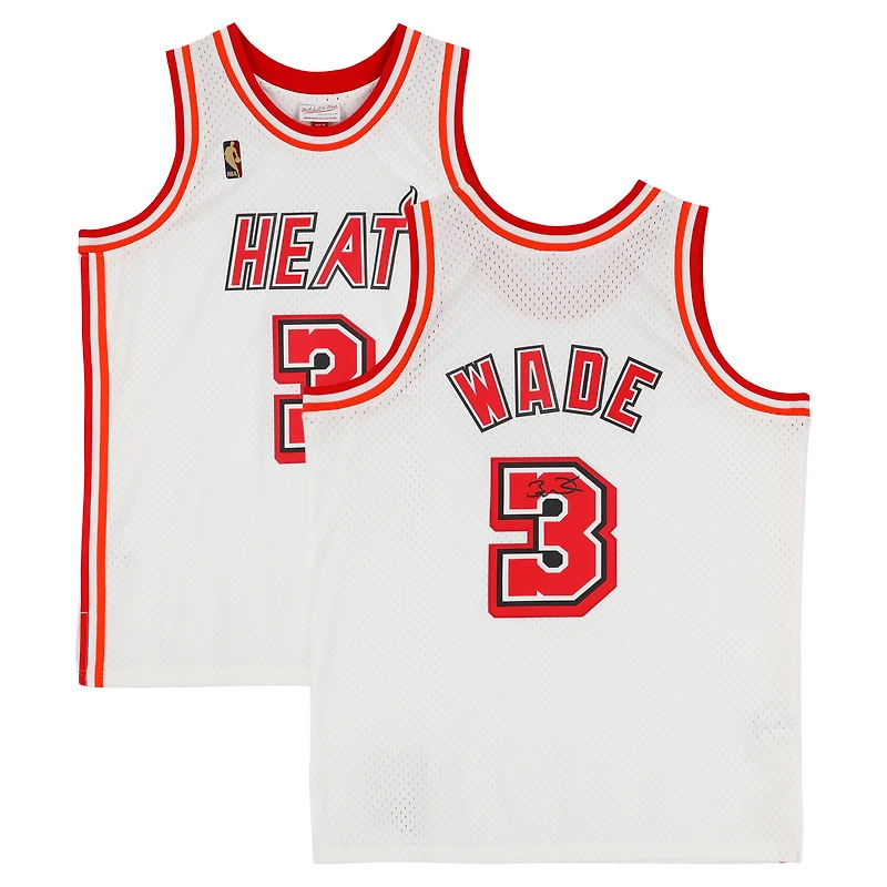 Elevate your collection of Miami Heat memorabilia by picking up this Dwyane Wade autographed Mitchell & Ness 2007-08 Classic White Swingman Jersey. Featuring a striking signature from the Miami Heat star, it's a must-have addition for any die-hard fan or serious collector. This collectible also includes an individually numbered, tamper-evident hologram that can be verified online to certify its authenticity.