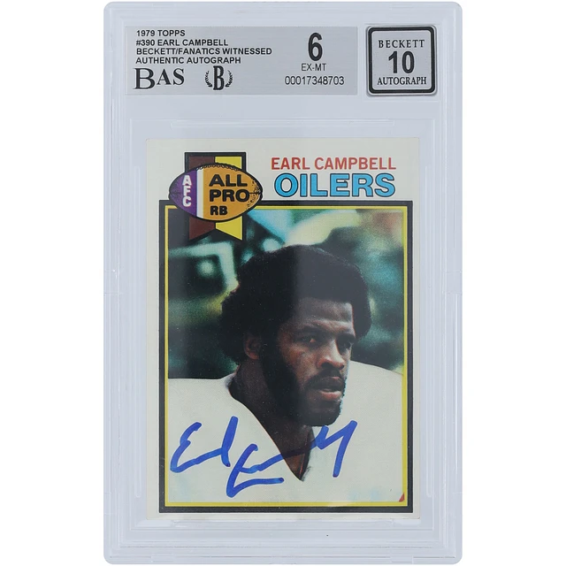 Earl Campbell Houston Oilers Autographed 1979 Topps #390 Beckett Fanatics Witnessed Authenticated /10 Rookie Card