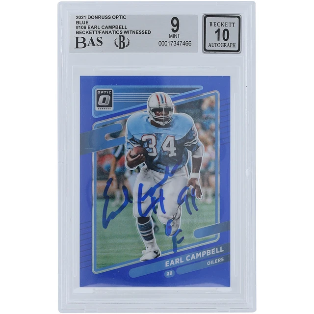 Earl Campbell Houston Oilers Autographed 2021 Panini Donruss Optic Blue #106 #/179 Beckett Fanatics Witnessed Authenticated 9/10 Card with "HOF 91" Inscription