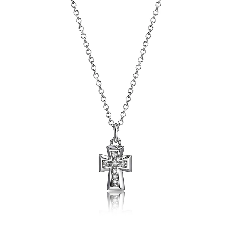 Elle "Scintillation" Small Cubic Zirconia Cross Necklace 18+2" Extension
