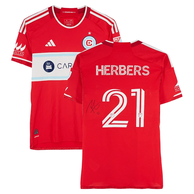 Fabian Herbers Chicago Fire Autographed Match-Used #21 Red adidas Jersey from the 2024 MLS Season - Size M