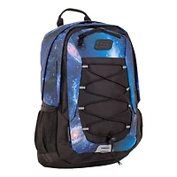 durable polyester shell donning a space-inspired print, this back has a roomy