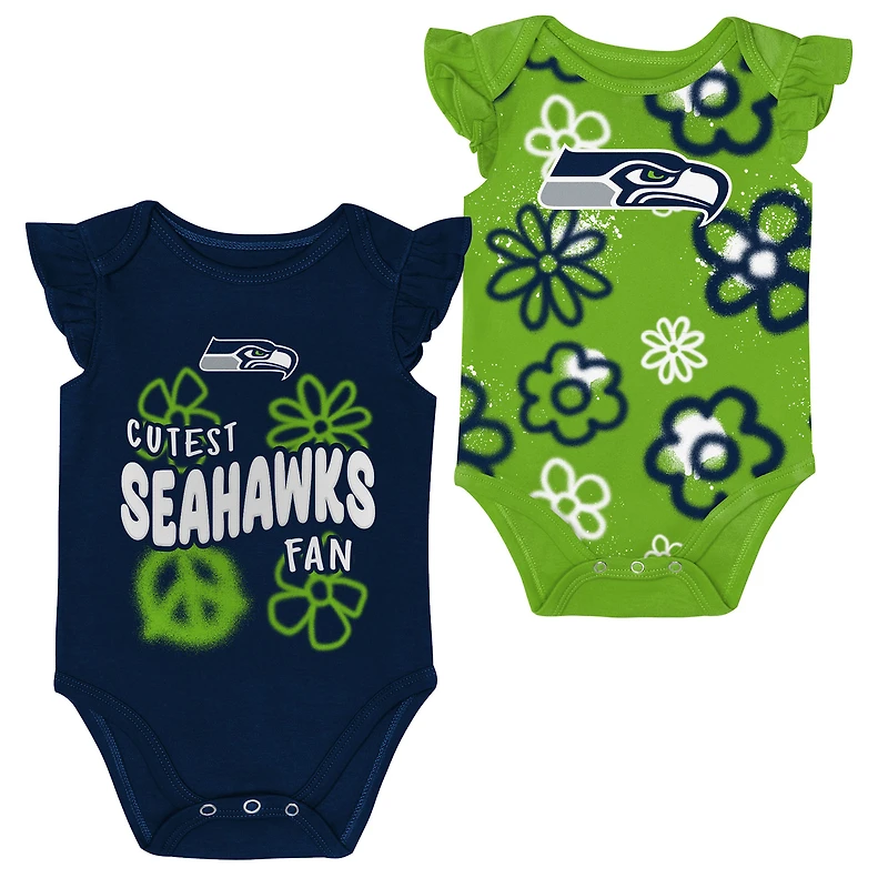 Outfit your little one in this Outerstuff The Sunshine Two-Piece Bodysuit Set and start them on the path to becoming a lifelong Seattle Seahawks fan. Crafted from soft, breathable cotton, this set ensures your little one stays comfy while showing off their burgeoning team pride. The lap shoulder neckline and three-snap closure make changing time a breeze, so you can get back to cheering on the Seattle Seahawks together.