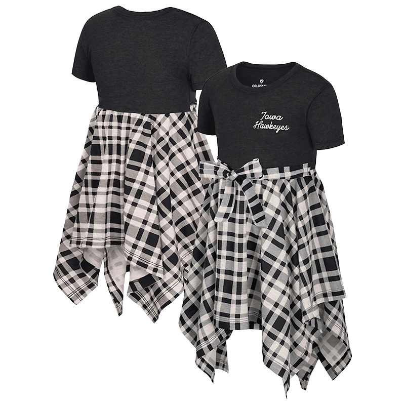 Help your favorite young fan show her Iowa Hawkeyes spirit with this Marceline Plaid Dress by Colosseum. The solid team color top and flared plaid skirt with a handkerchief hem create a stylish look that's perfect for game day or any day. Plus, the embroidered team graphics make it an adorable way for her to show her love for the Iowa Hawkeyes.