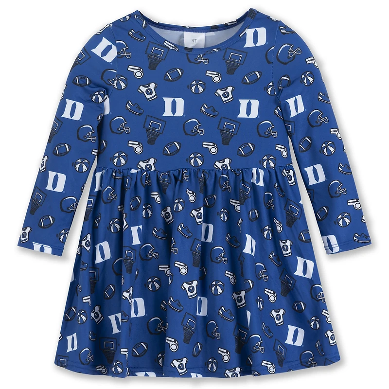 Girls Toddler ZooZatz Royal Duke Blue Devils All-Over Print Football Dress