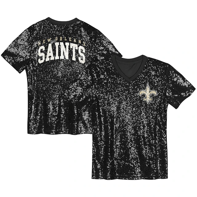 Girls Youth Black New Orleans Saints Wordmark Sequin V-Neck Top