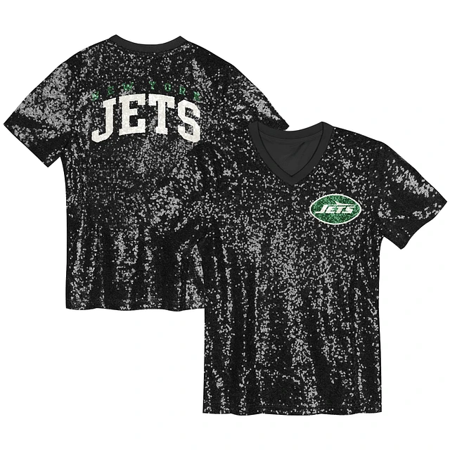 Girls Youth Black New York Jets Wordmark Sequin V-Neck Top
