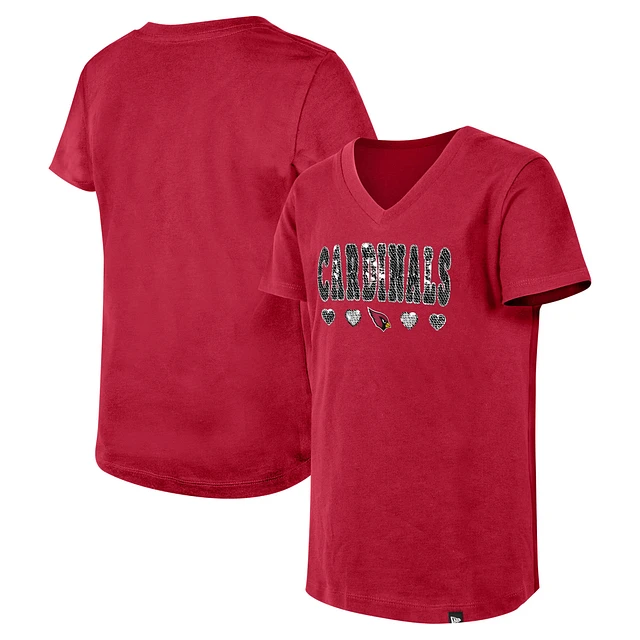 Girls Youth New Era Cardinal Arizona Cardinals Flip Sequin V-Neck T-Shirt