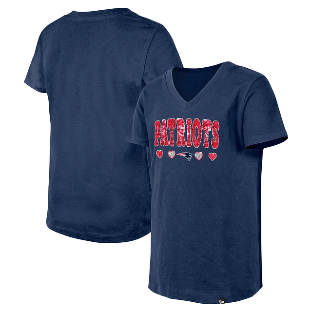 Girls Youth New Era Navy England Patriots Flip Sequin V-Neck T-Shirt